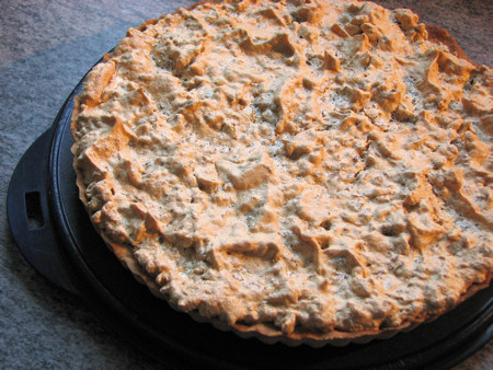Aus den Teigzutaten einen Mürbeteig herstellen. Teig ausrollen. Eine Tarteform ausbuttern und mit 2/3 des Teigs auslegen. Einen Rand aus dem restlichen Teig herstellen und festdrücken. Dann gleichmäßig mit einer Gabel einstechen und anschließend mit Konfitüre bestreichen. 15 Minuten im vorgeheizten Backofen bei 200°C backen.