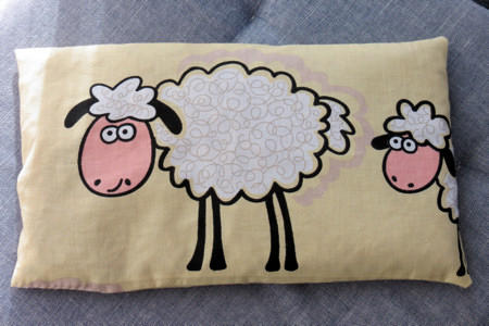 Der Stoff ist wieder von Buttinette. Ich finde die Schafe echt witzig und hätte das Kirschkernkissen am liebsten selbst behalten.... aber ich hab' ja schon eins. ;o)